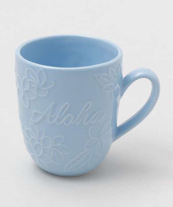 ALOHA プルメリアマグカップ ホワイト ブルー ハワイアン 陶器 コップ キッチン雑貨